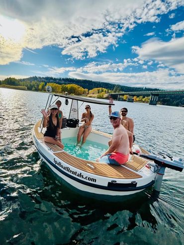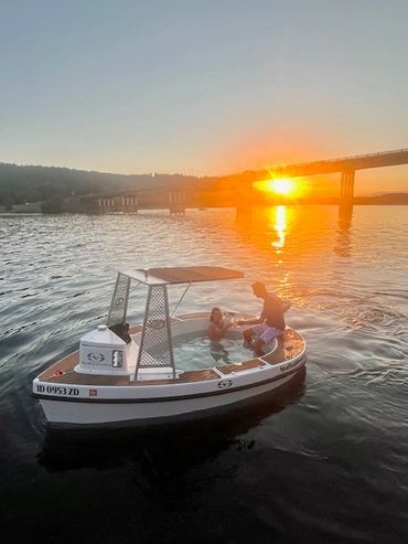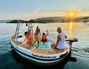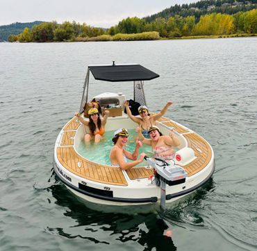 Explore the beautiful North Idaho waters in your private hot tub boat! During your cruise, the Spacruzzi is all yours. It holds six passengers and is powered by a whisper-quiet electric engine, which allows you to motor along at up to 5mph. Remember, this is all about relaxing, not racing.